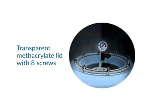 Transparent methacrylate lid with 8 screws.